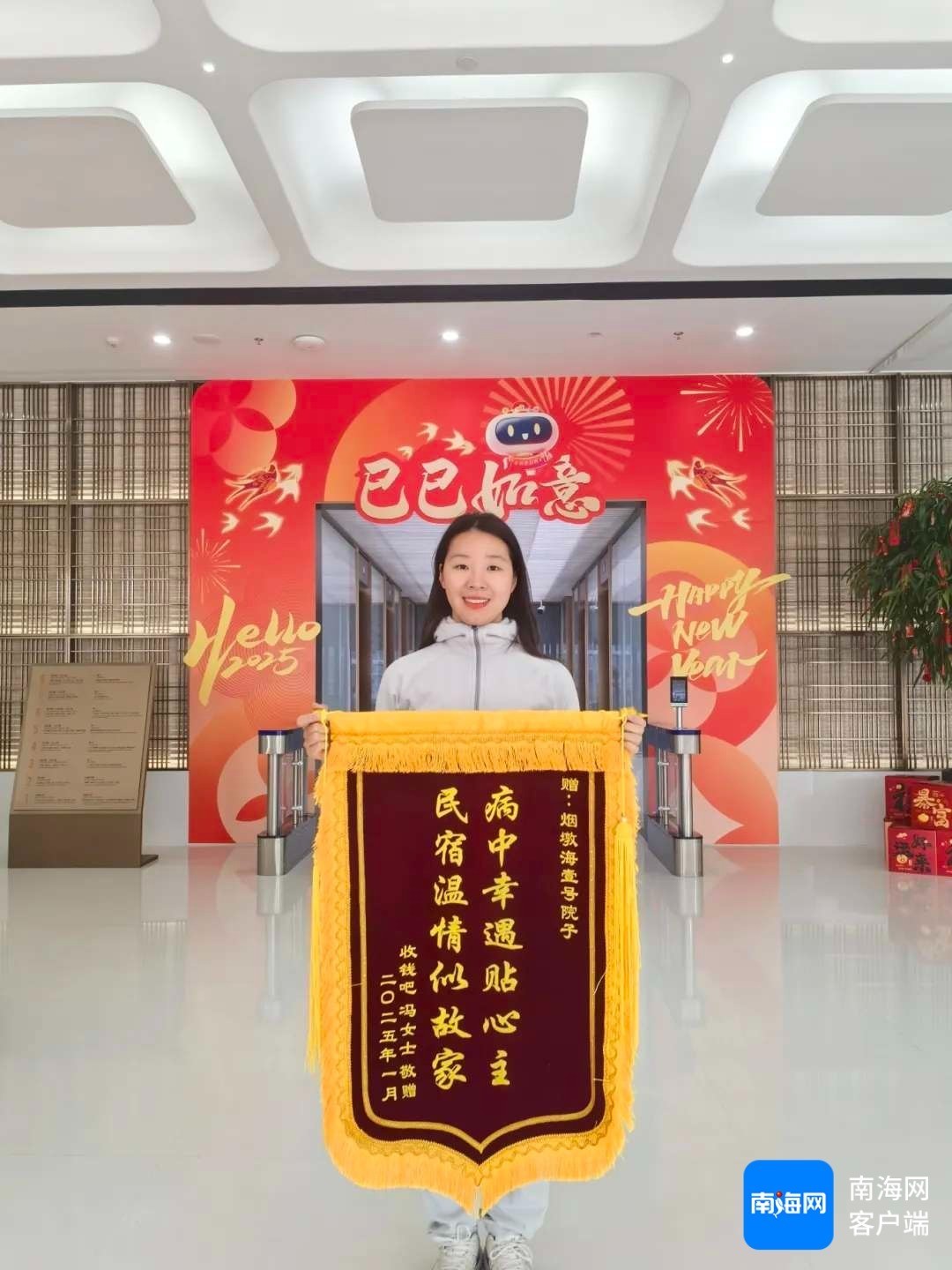 南海网2月24日消息(记者 张野)近日,万宁烟墩海壹号院子民宿收到了一份特殊的礼物:一面锦旗、上海土特产以及一封饱含深情的感谢信。这背后,是一个关于陌生人在异乡得到贴心守护的感人故事。